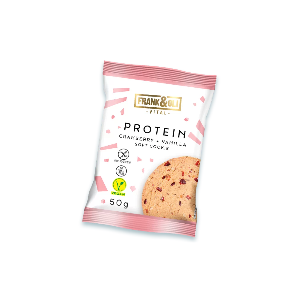 Frank & Oli протеинско веганско колаче со брусница и ванила – 50 гр – без глутен