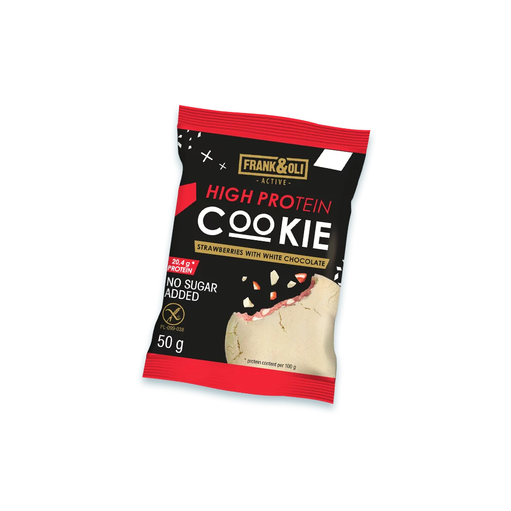 Frank & Oli Високо-протеинско колаче со јагода и бела чоколада – 50гр – без глутен